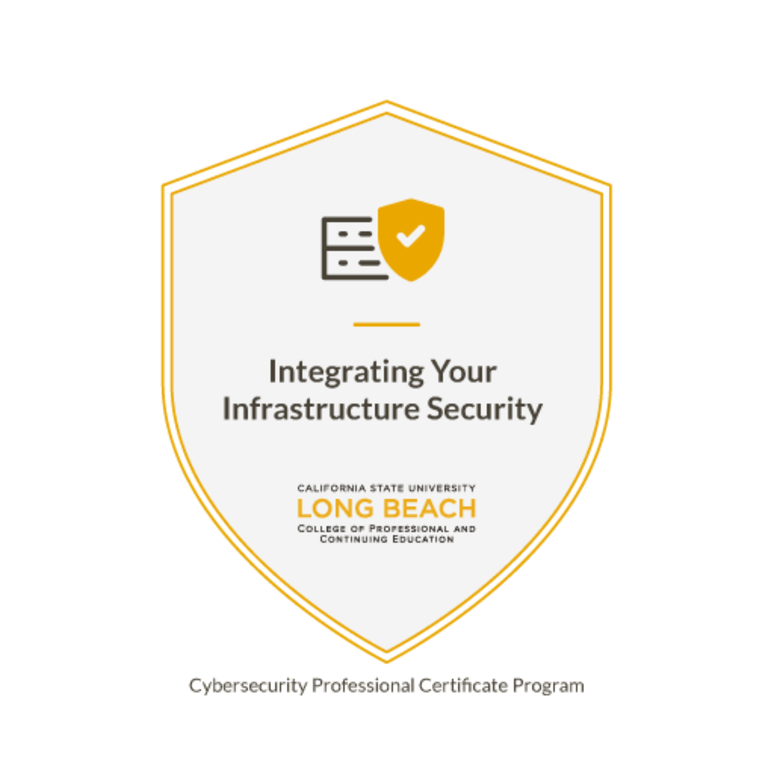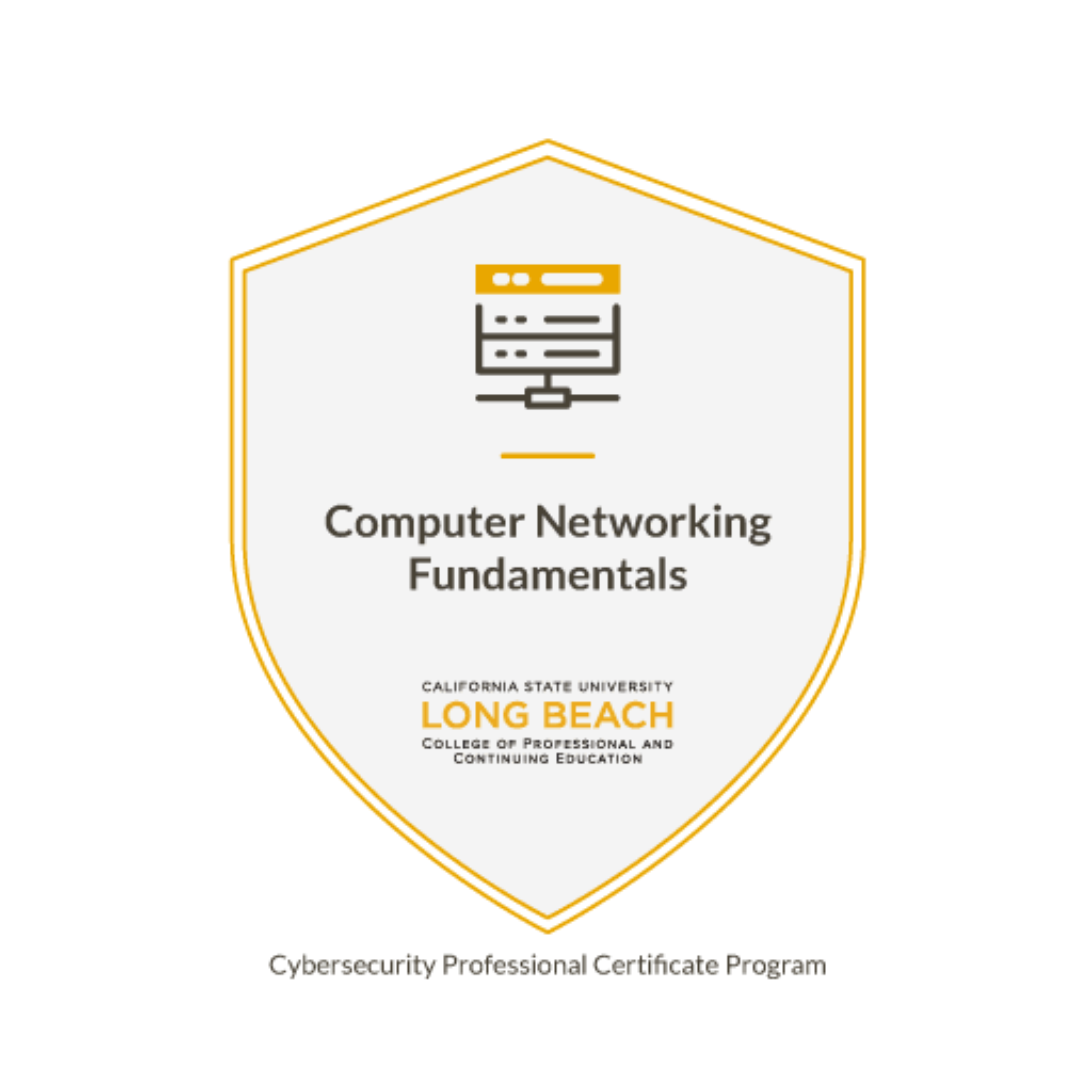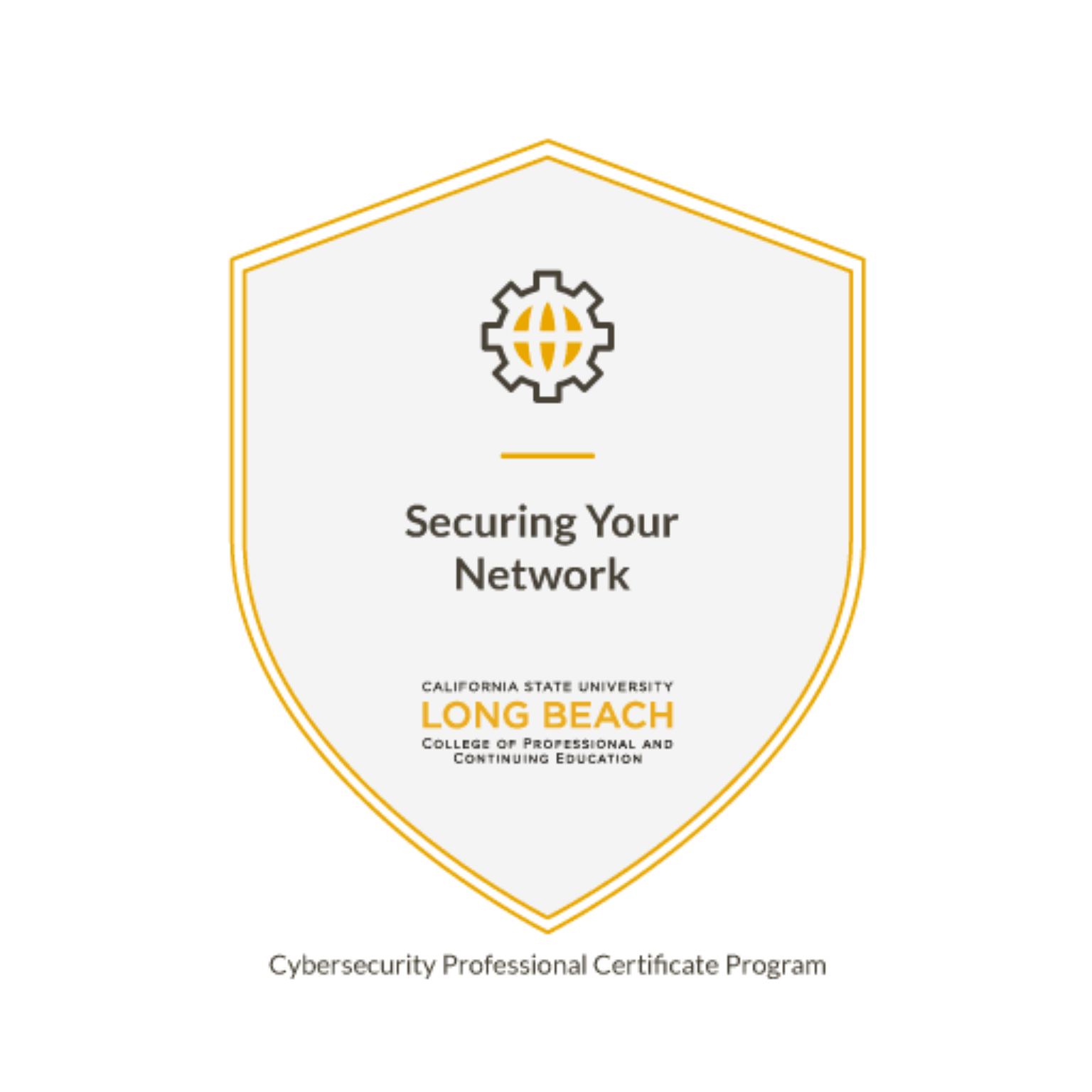 The nine completed modules inside the CSULB Cybersecurity Professional Certificate Program. Each module required hands-on lab work, not just coursework completion.